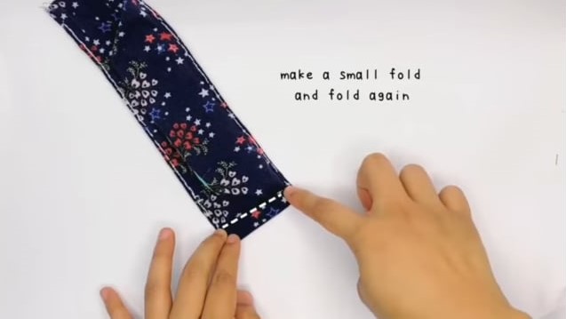 Make two small folds on the bottom of the unhemmed part.